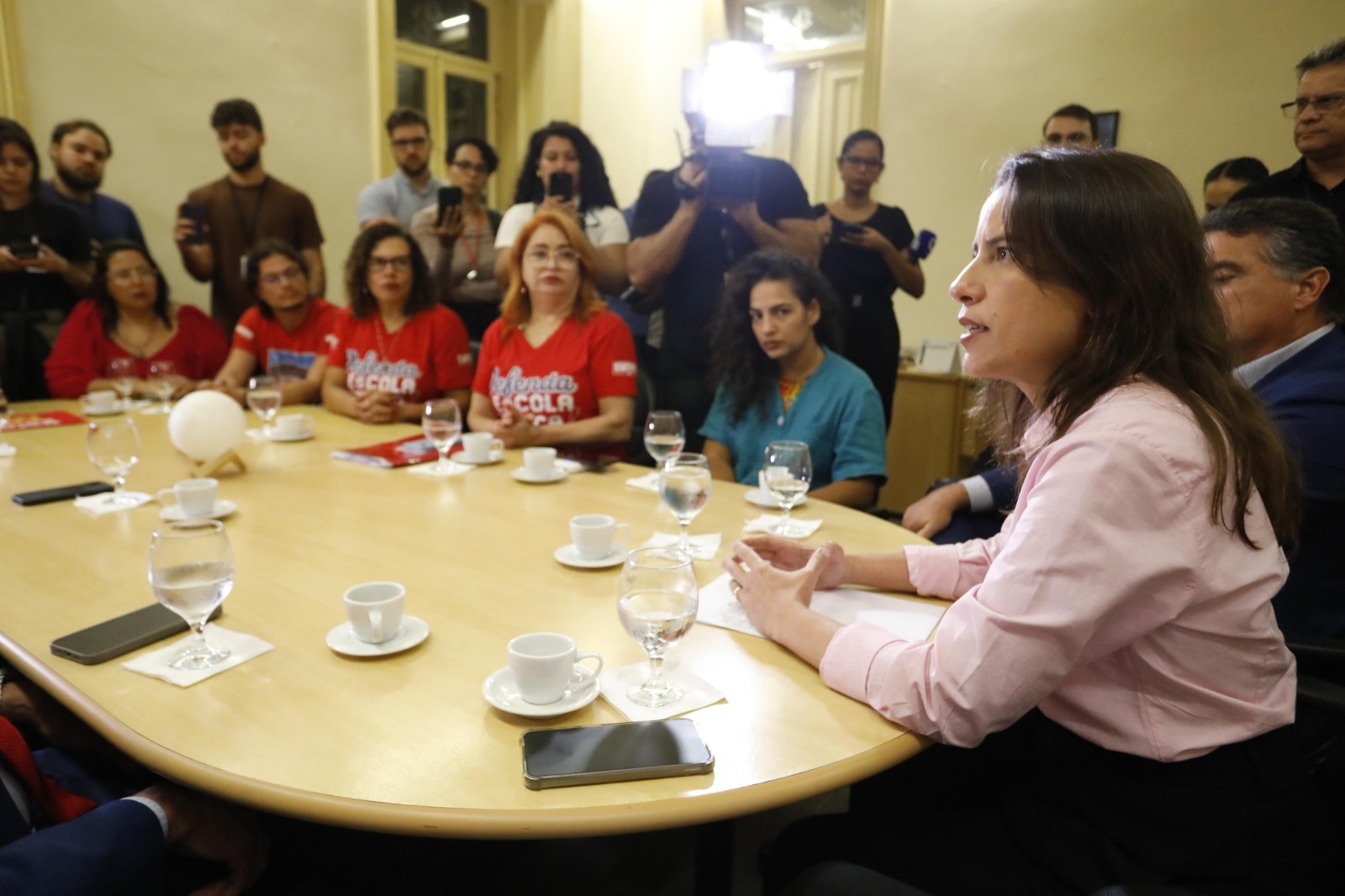 “A folha salarial vai ser paga dia vinte, e nós estamos prontos para rodar uma folha extra caso a votação do projeto pelo Legislativo não seja feita até essa data. Vamos deixar tudo pronto para que em até 48 horas após a votação façamos a liberação dos recursos. Educação é prioridade para o nosso governo em vários aspectos: desde a estrutura, a escola, até a construção de novas vagas, e obviamente, a alma disso são vocês, trabalhadores”, enfatizou.