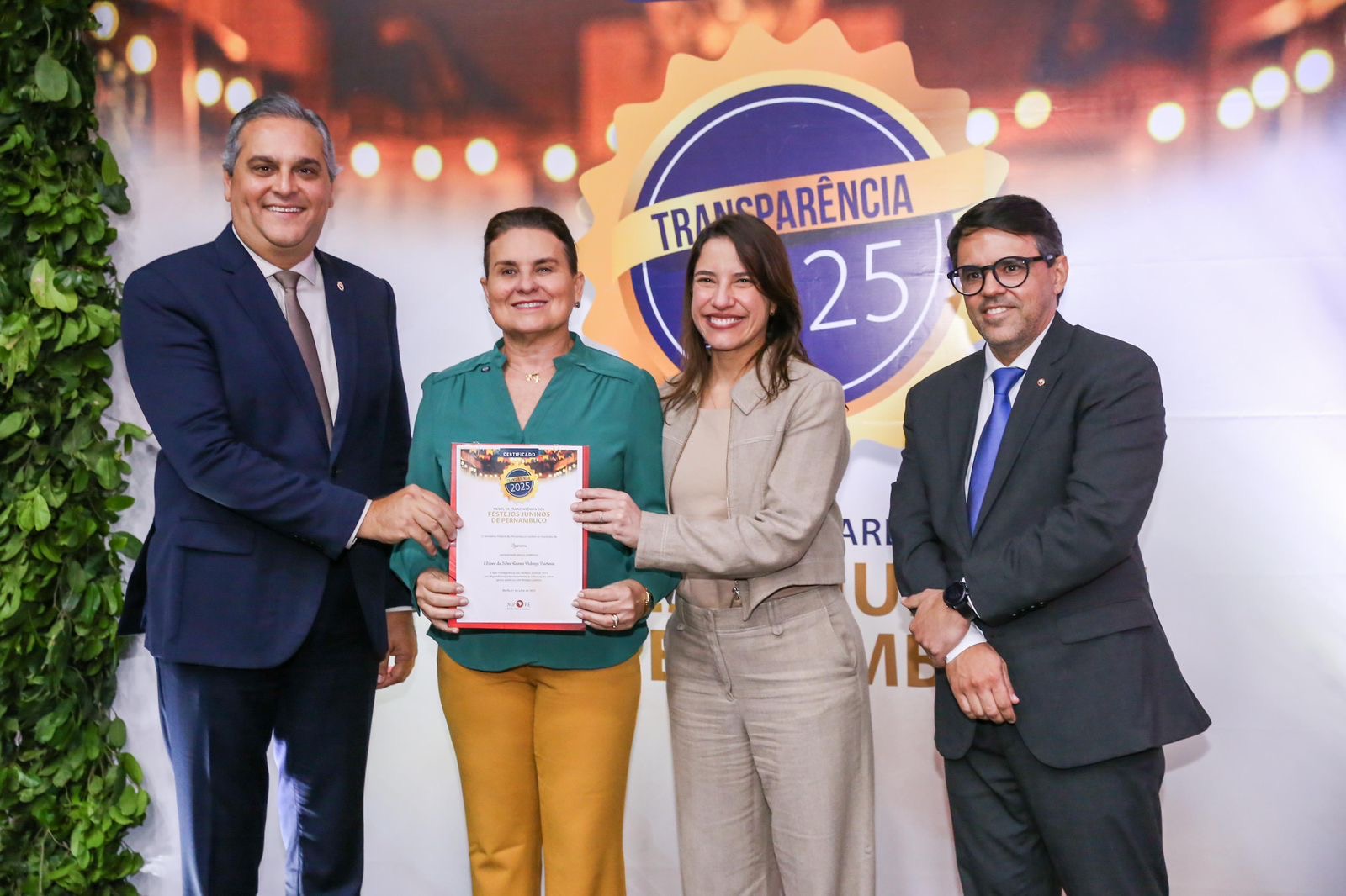 Representando Igarassu, a prefeita professora Elcione Ramos recebeu, nesta segunda-feira (21), o Selo Transparência de Festejos Juninos em 2025, pela colaboração voluntária na apresentação de informações em relação às contratações artísticas no período. Esta é a segunda vez consecutiva que Igarassu é contemplada com o Selo.