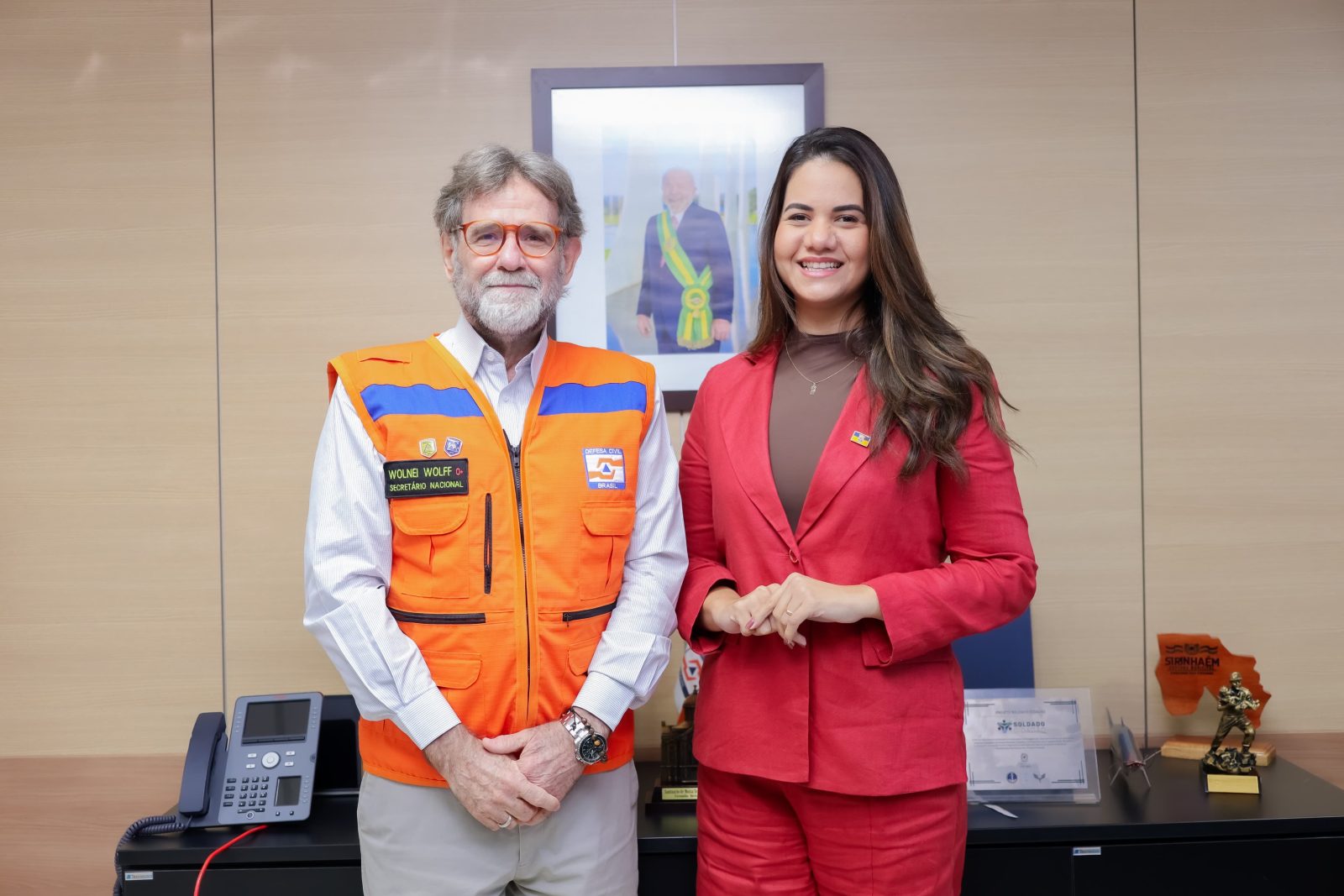 A prefeita de Olinda, Mirella Almeida (PSD), viajou a Brasília com o objetivo de buscar investimentos para novas obras no município. A gestora se reuniu, nesta terça-feira (27/05), com o secretário Nacional de Proteção e Defesa Civil, Wolnei Wolff. Durante o encontro, foram tratados o avanço dos convênios do PAC para áreas de encostas, além do reforço da frota da Defesa Civil.