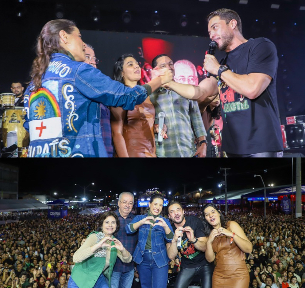 “Governadora, venha cá! Eu sou seu fã, acompanho seu trabalho. A senhora está de parabéns! Venha dançar quadrilha comigo!”, declarou o cantor no centro do palco, levando o público ao delírio.